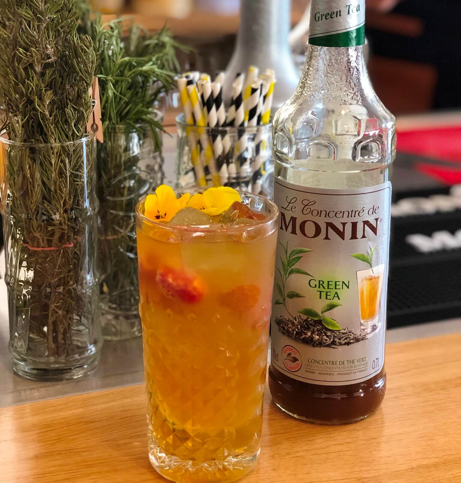 Letošnjo pomlad (2019) sta se naši ponudbi pridružila dva nova izdelka znamke MONIN: koncentrat ledenega čaja z okusom zelenega čaja in 100% naravni sadni pire hruška. Zelo okusna pa sta tudi v kombinaciji med seboj in sicer zeleni ledeni čaj z okusom hruške vas ne bo pustil ravnodušnih!