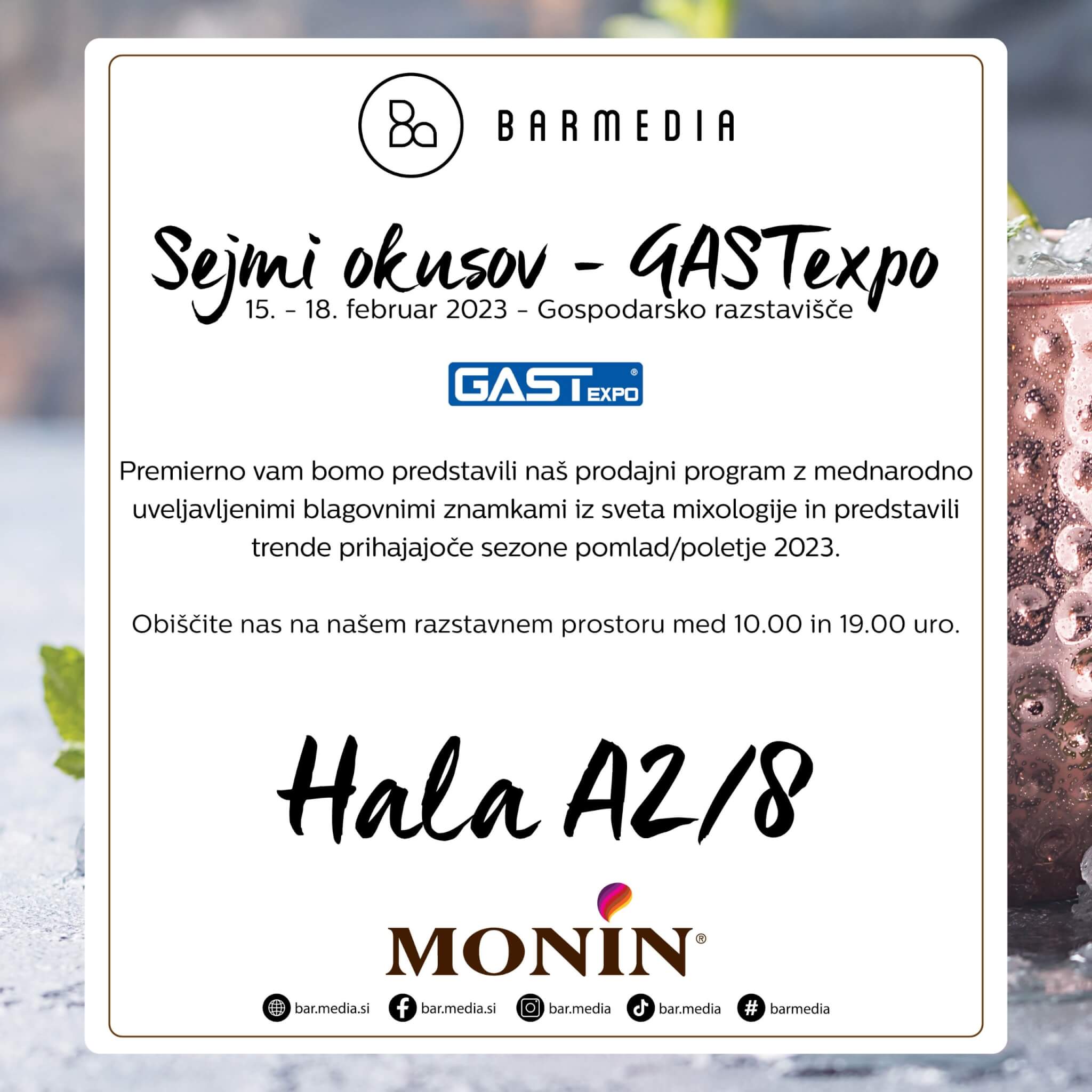 Premierno se bomo predstavili tudi mi in vam predstavili naš prodajni program z mednarodno uveljavljenimi blagovnimi znamkami iz sveta mixologije in predstavili trende prihajajoče sezone pomlad/poletje 2023.